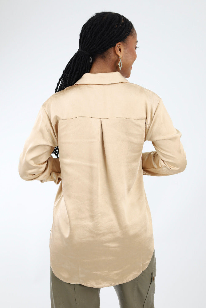 Step into refined elegance with our Silky Button Down Blouse. The luxurious fabric and timeless button-down style create a chic ensemble, perfect for making a lasting impression.