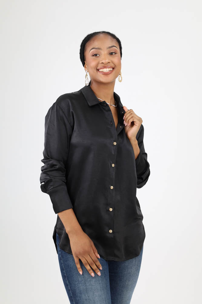 Silky Button Down Blouse - Black