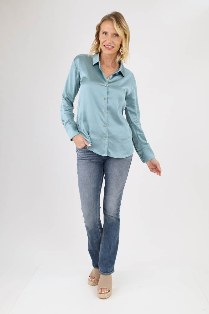 Step into refined elegance with our Silky Button Down Blouse. The luxurious fabric and timeless button-down style create a chic ensemble, perfect for making a lasting impression.
