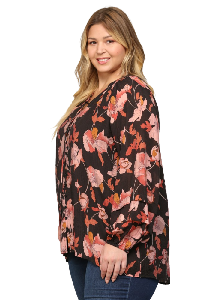 Introducing our Floral Print Tie Blouse, a chic addition to your wardrobe. Featuring vibrant floral patterns and a stylish tie detail, this blouse adds flair to any outfit. Perfect for both casual outings and special occasions, it's a versatile piece that exudes charm and sophistication.