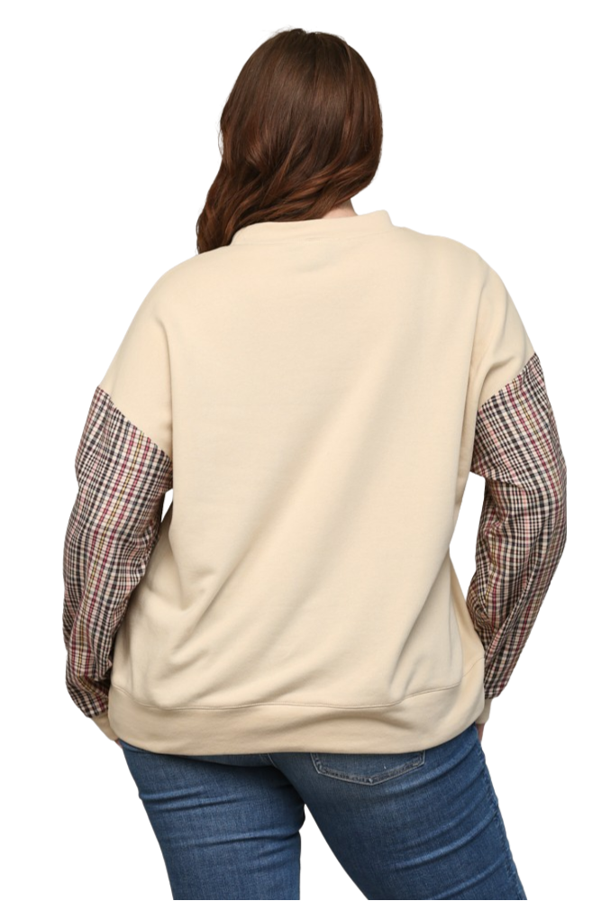 Elevate your casual style with our French Terry Round Top featuring a stylish plaid contrast. This cozy yet fashionable piece seamlessly blends comfort with trendiness, making it a must-have for a relaxed yet polished look.