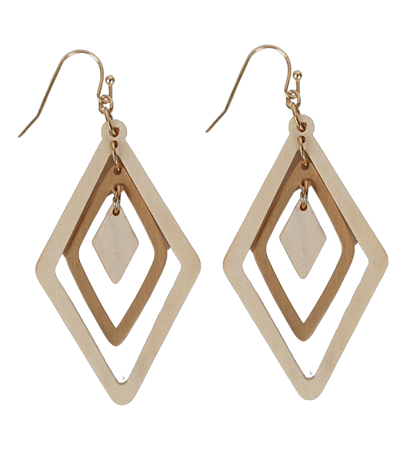 Diamond Shape Wood Earrings - Ivory