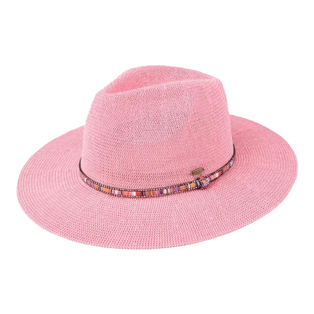 Panama Hat with Multi Thread and Rhinestone Trim Band - Pink