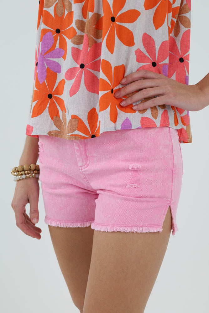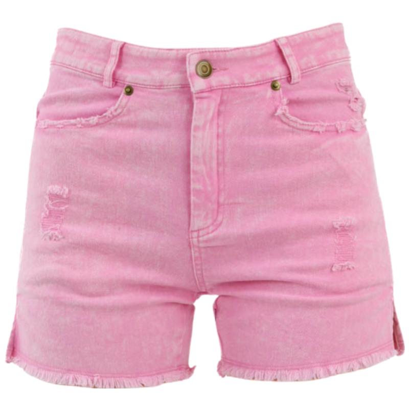 Country Chic Denim Distressed Shorts -Pink