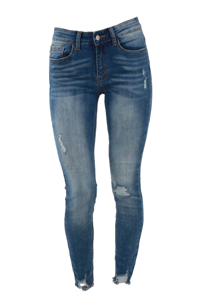 Vintage Raw Hem Distressed Skinny Jeans - Blue