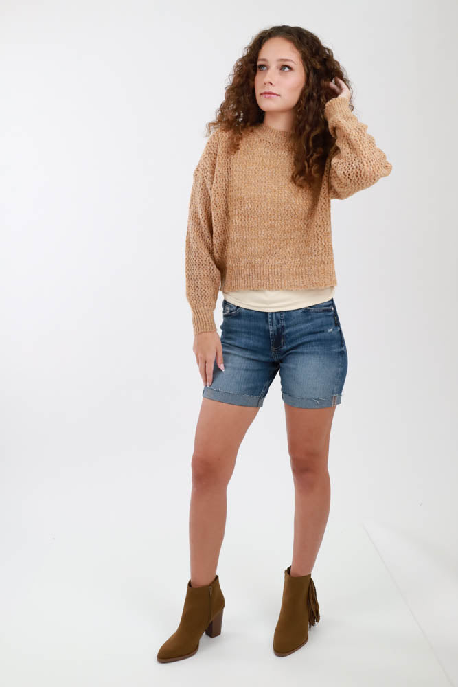 Country Chic Denim Distressed Shorts -Ginger