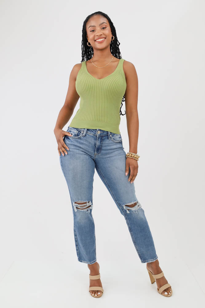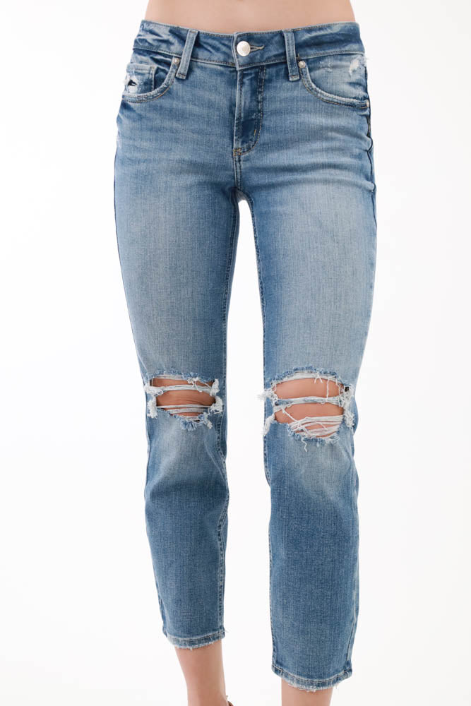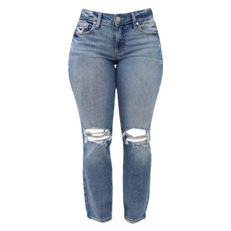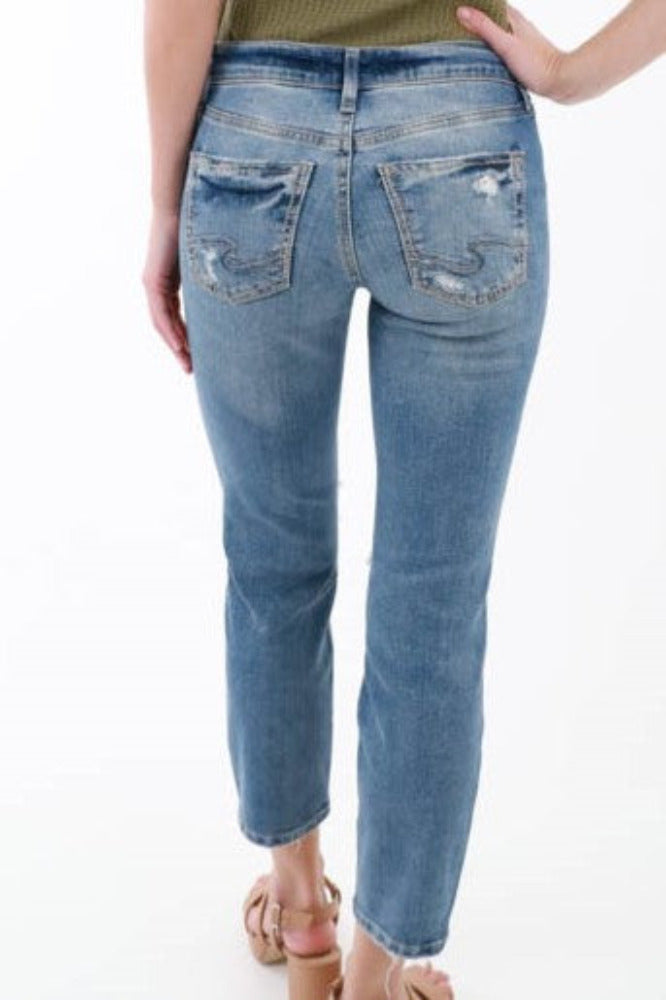 Silver Mid Rise Curvy Fit Straight Crop Jeans - Blue
