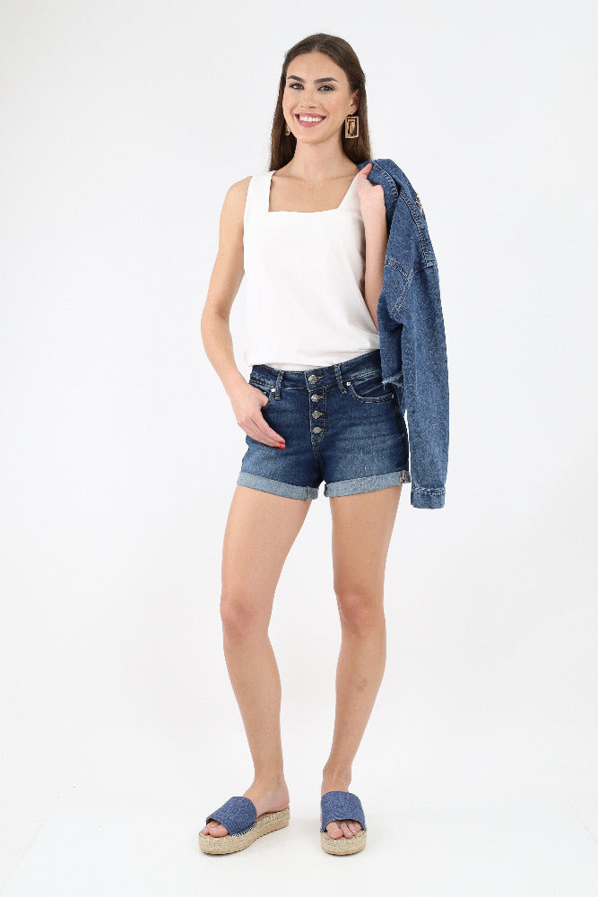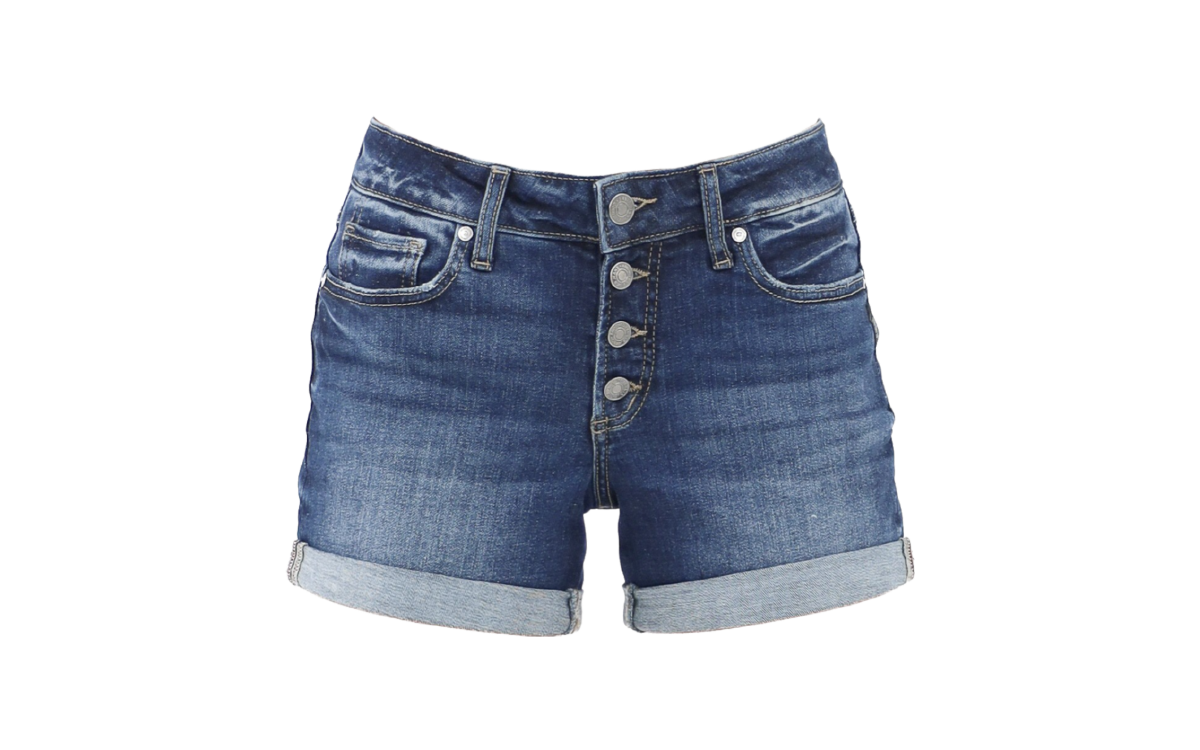 Silver Suki Button Up Mid Rise Shorts - Blue
