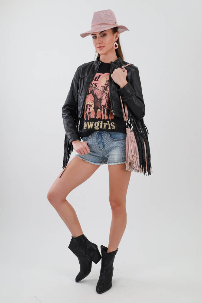 Get ready to shine bright in our Denim Shorts With All Over Stones – they're not just shorts; they're a dazzling dance floor waiting to happen! These shorts bring the bling with stones scattered all over, turning a classic piece into a sparkling statement. Embrace the fun, let your legs steal the show, and get ready to own every summer moment in these playful and bedazzled denim shorts.