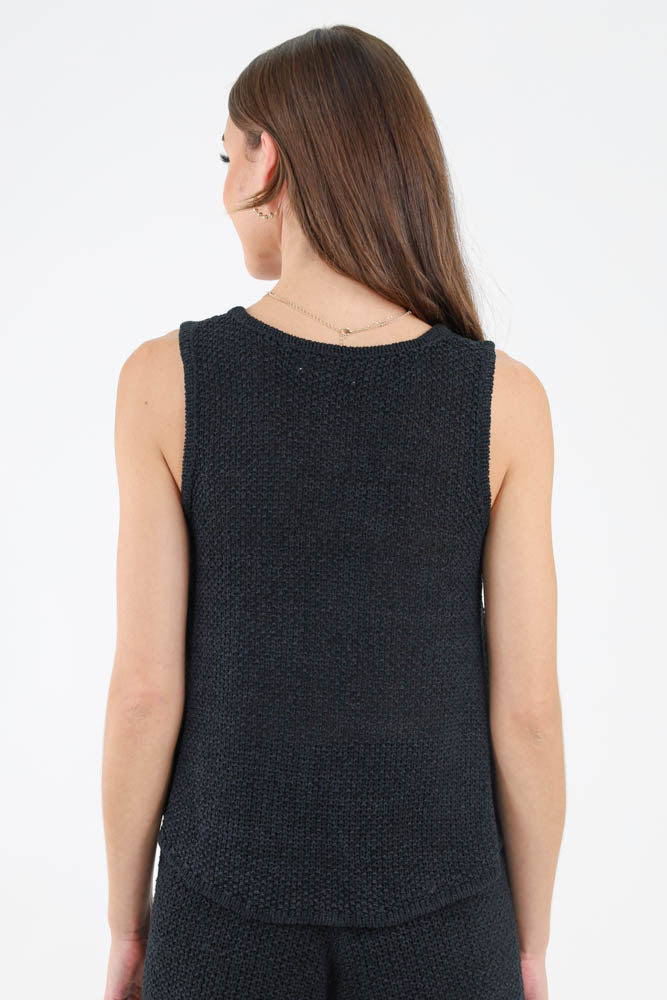 Summer Breeze Knit Tank Top -Black