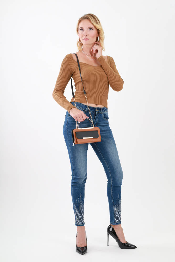 Sweetheart Neckline Top -Brown