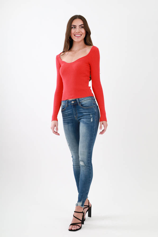 Sweetheart Neckline Top -Red