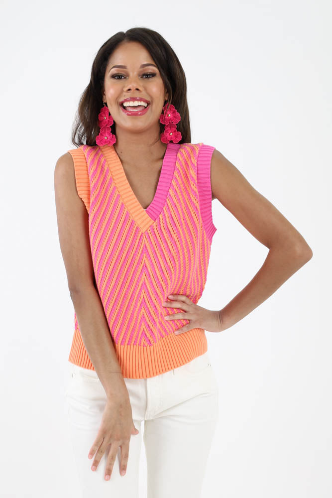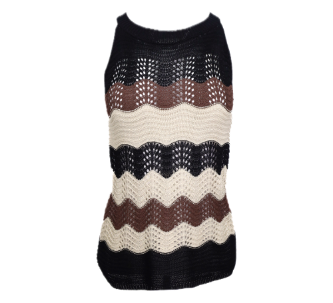 Zigzag Colorblock Sweater Knit Tank Top