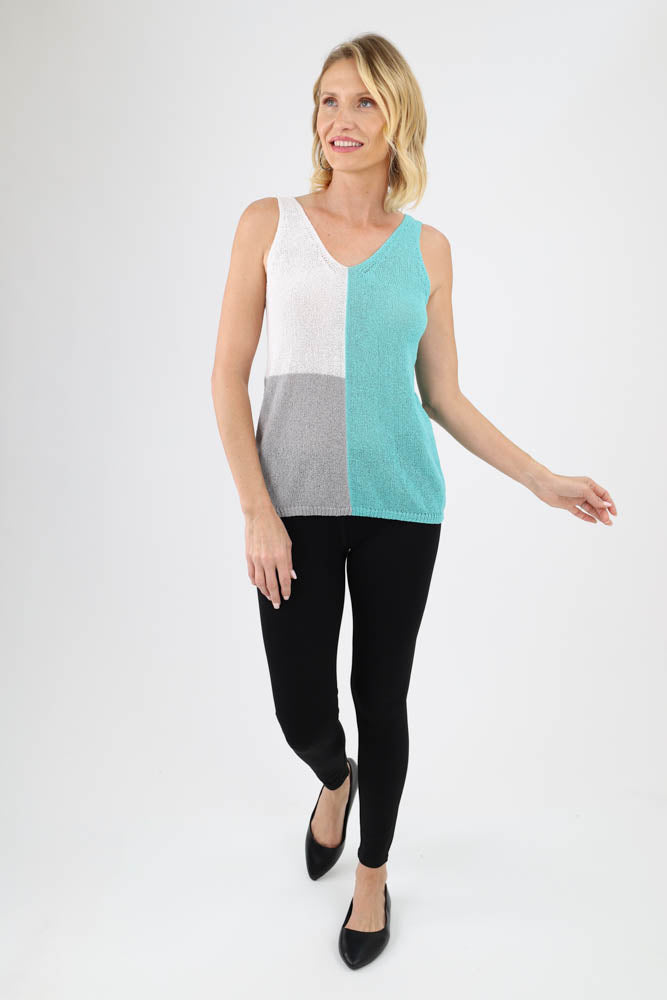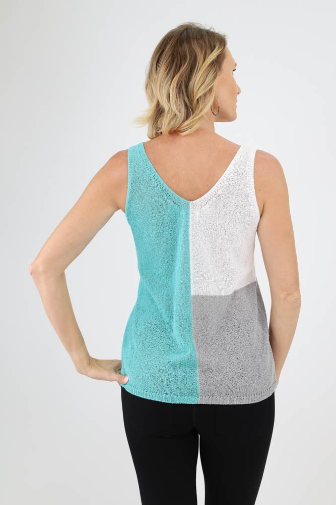 Colorblock Knit Tank - Aqua