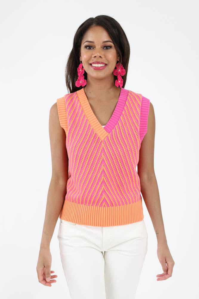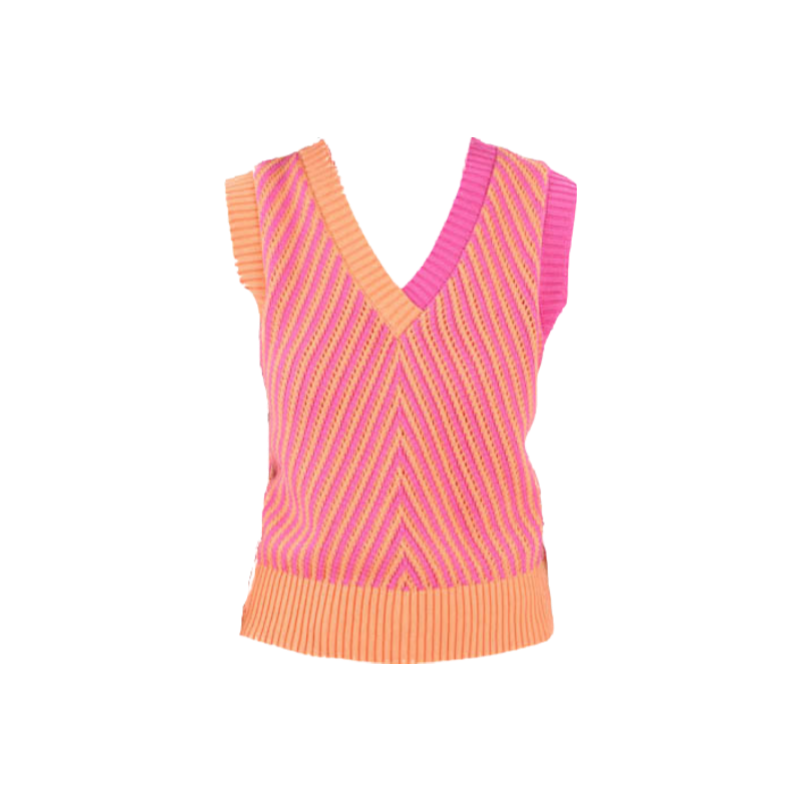 Contrast Color Knitted Vest - Pink