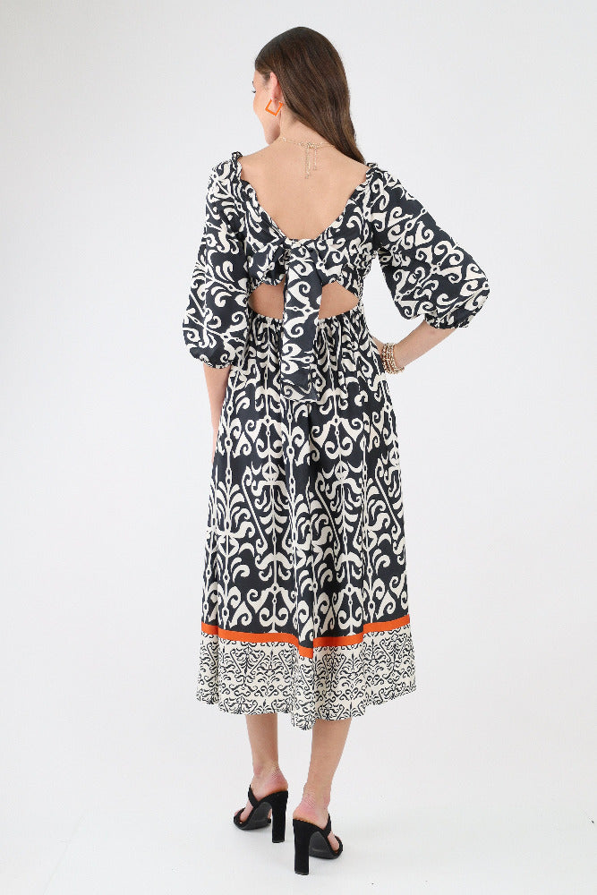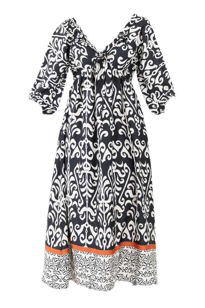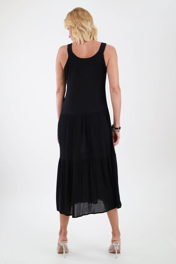 Monochrome Smocked Maxi Dress - Black