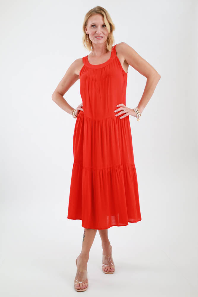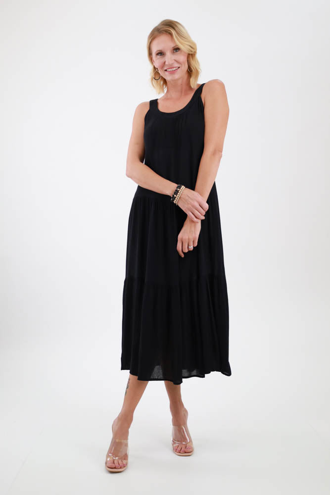 Crinkle Crepe Tiered Maxi Dress