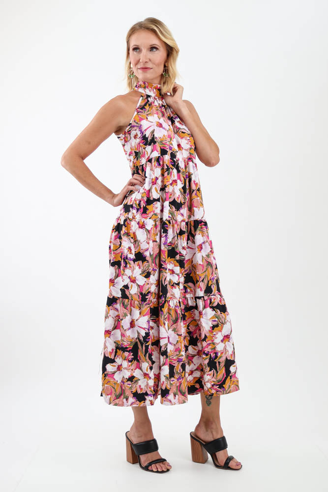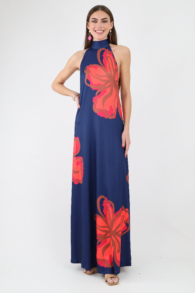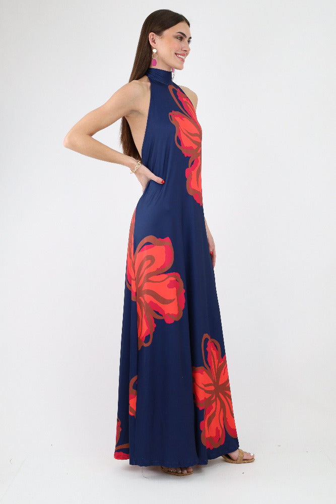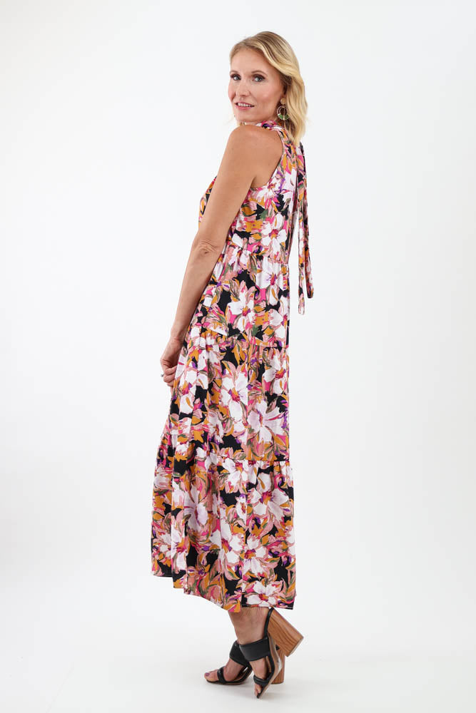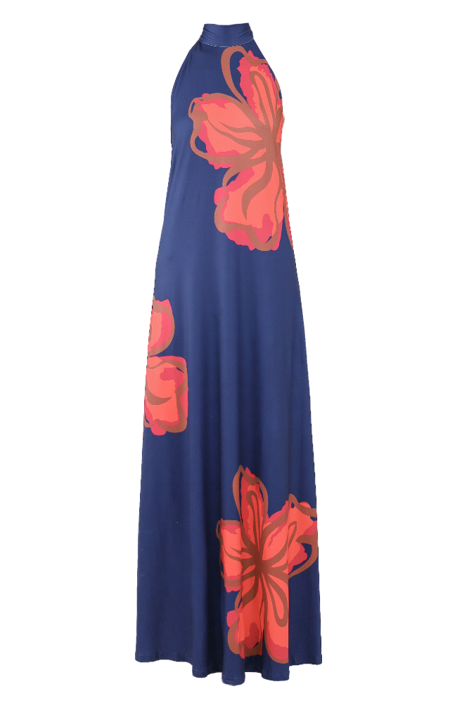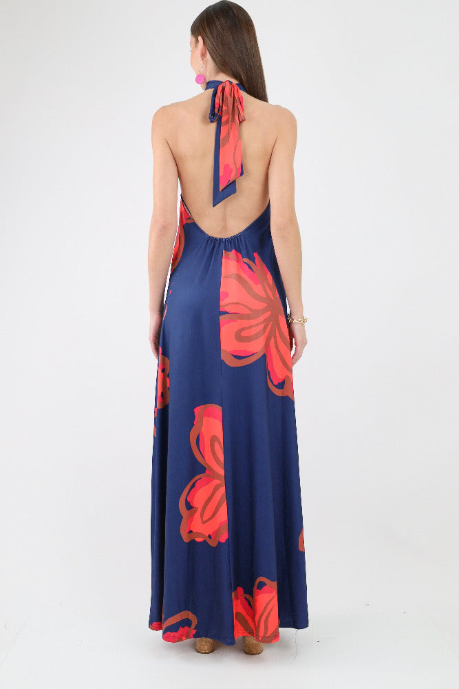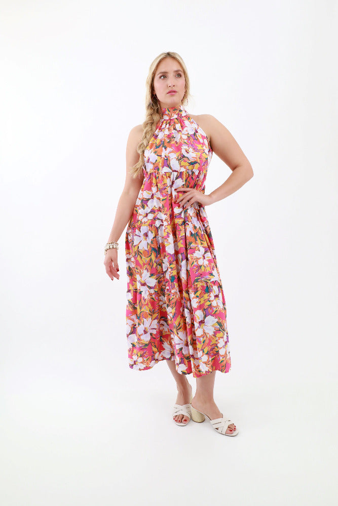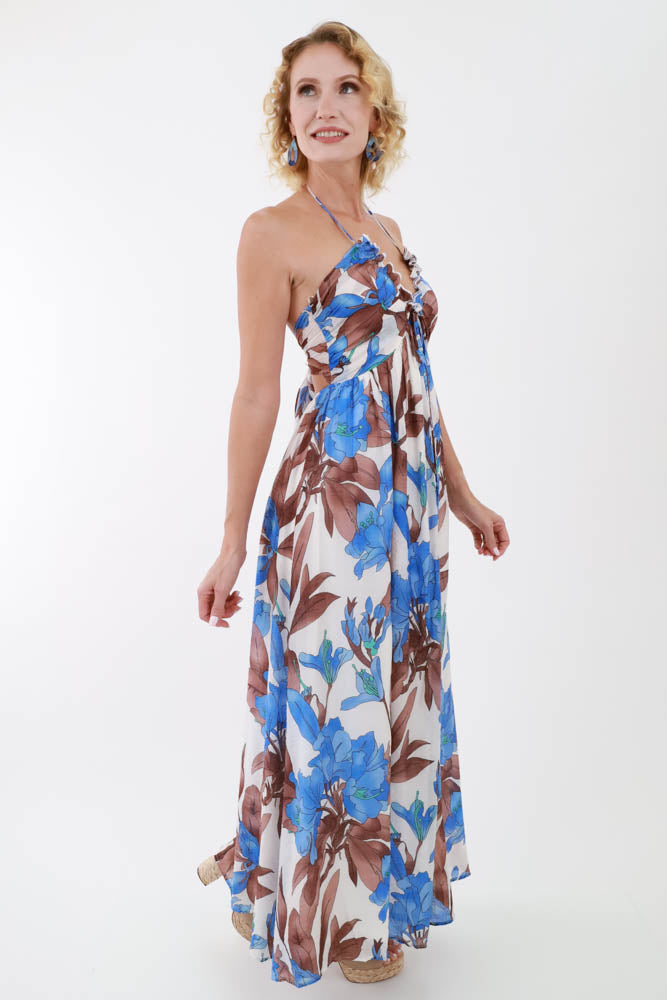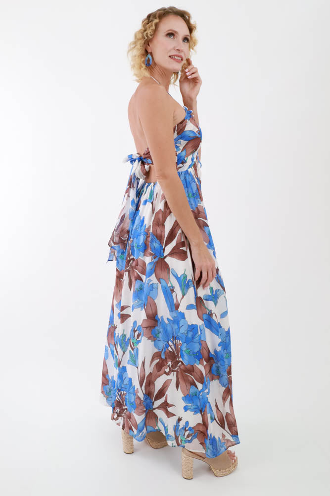 Floral Halter Tie Back Dress