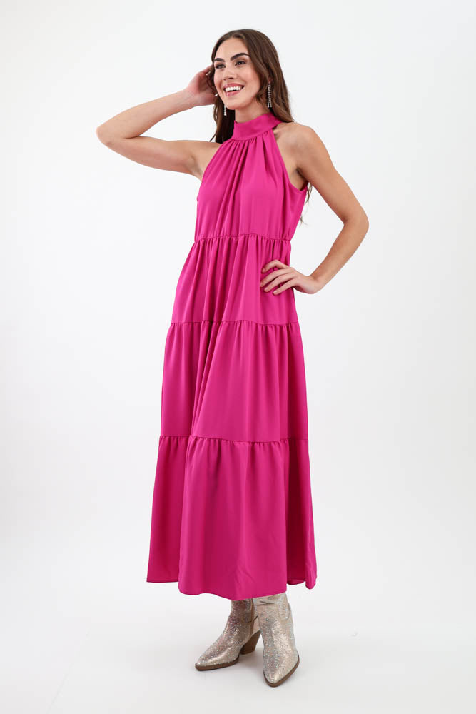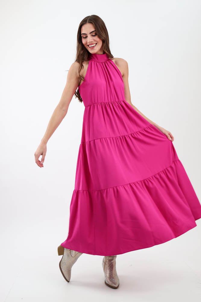 Chic Cocktail Pleated Maxi Dress - Fuchsia