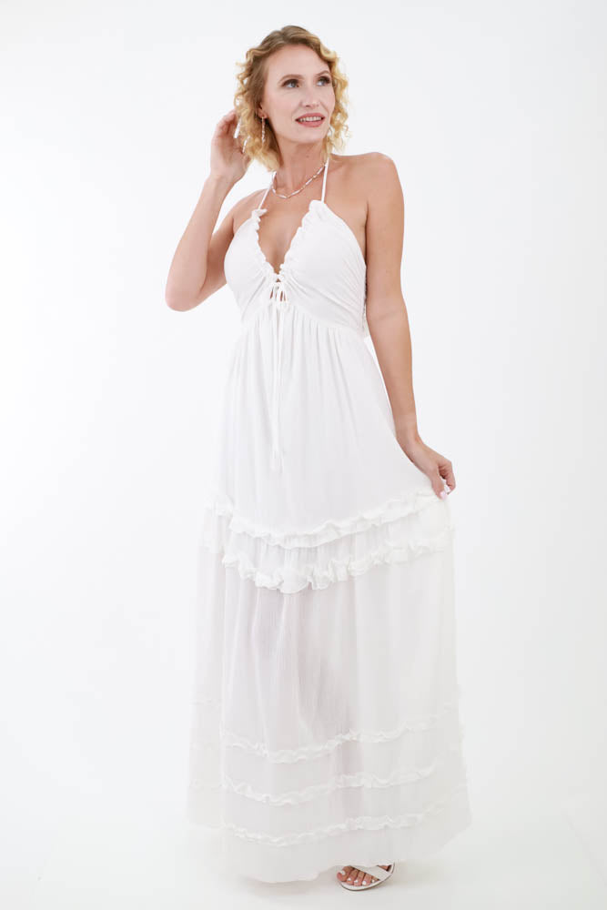 Whimsical Ruffled Maxi Dress - White