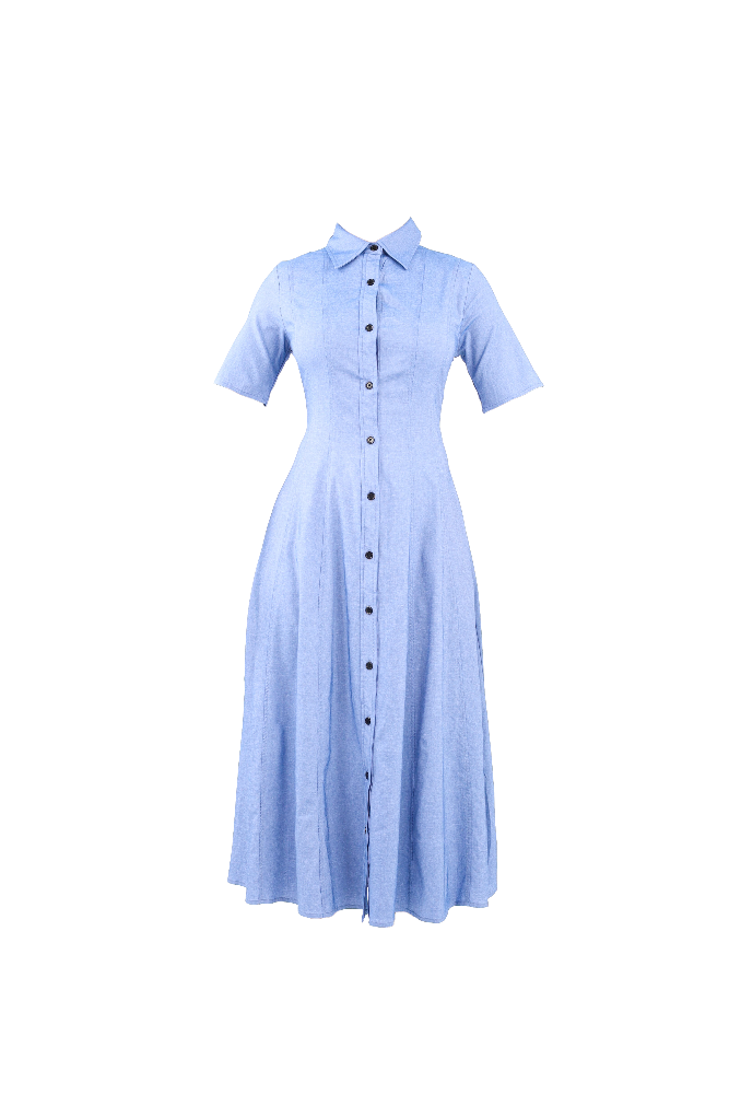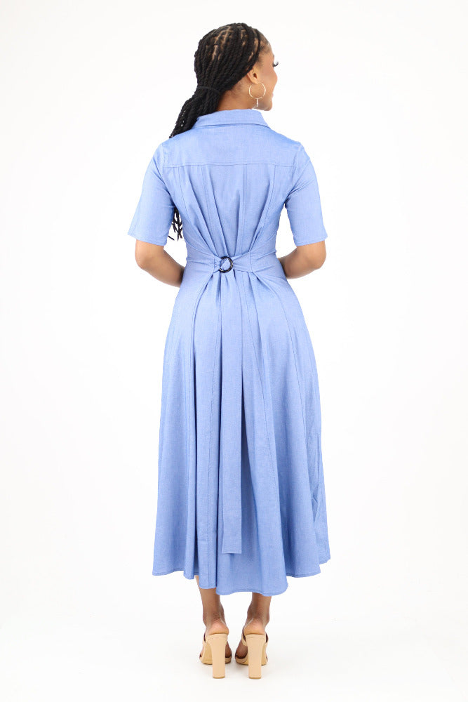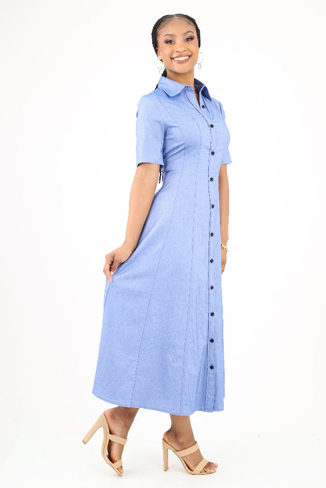 Button Down Shirt Dress - Blue