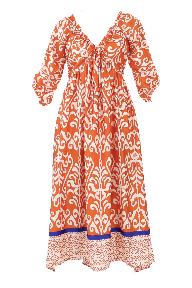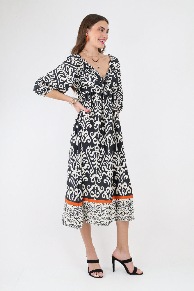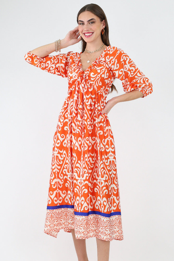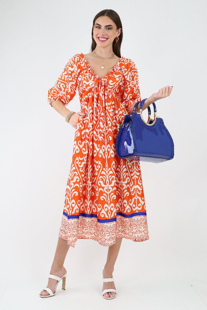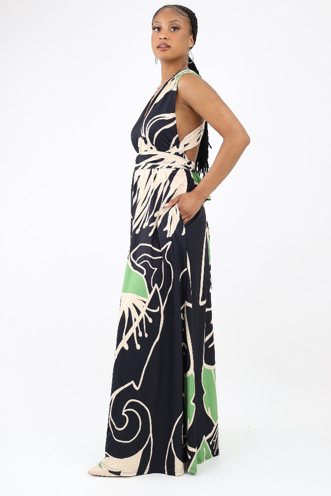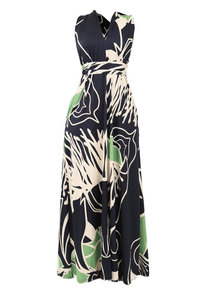 Printed V Neck Maxi Dress