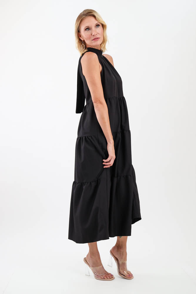 This dress features a chic halter neckline that beautifully frames your shoulders, and its flattering tie back design adds an extra touch of allure. Whether you're attending a summer soirée or a romantic dinner, this dress is your go-to choice for a captivating and fashionable look.