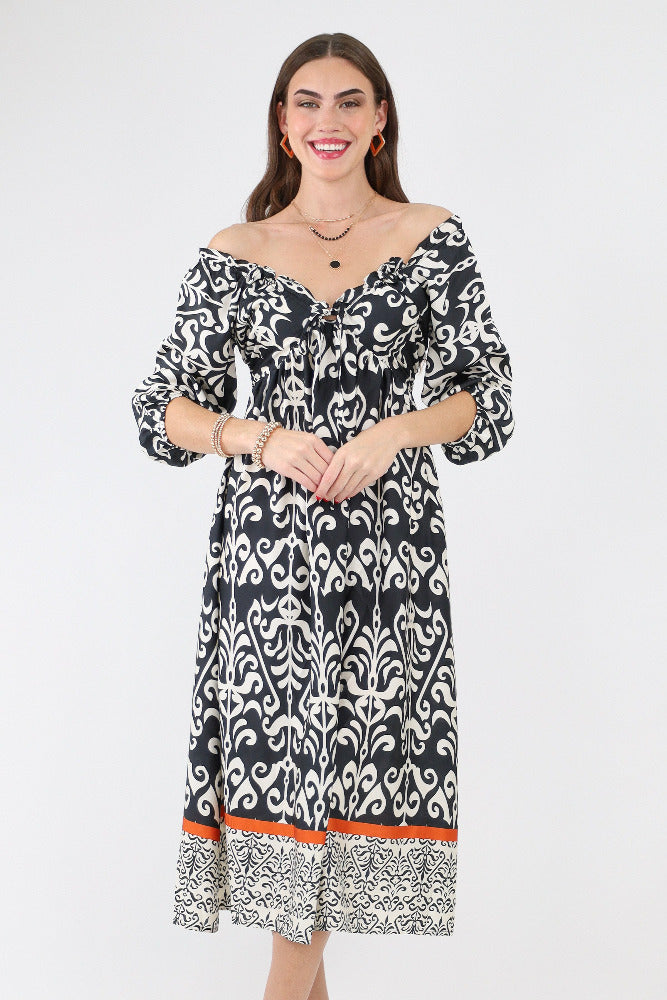 Elevate your style with our Printed V Neck Woven Long Dress! Featuring a flattering V-neck design and a captivating printed pattern on flowing woven fabric, this dress is perfect for making a statement on any occasion. Striking the perfect balance between trendy and comfortable, it's a must-have for your fashion-forward wardrobe.