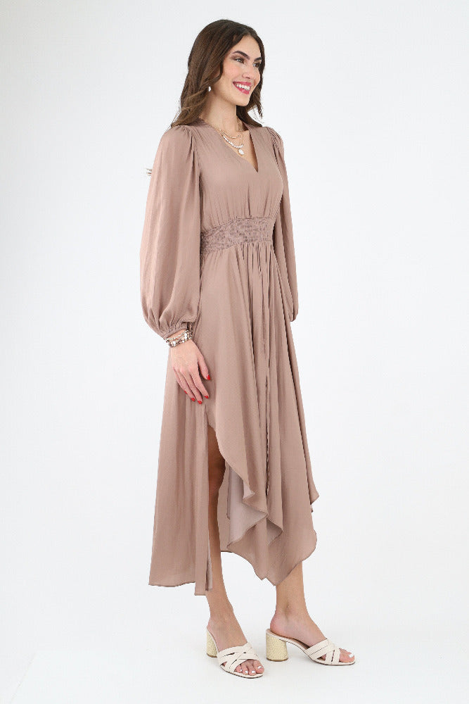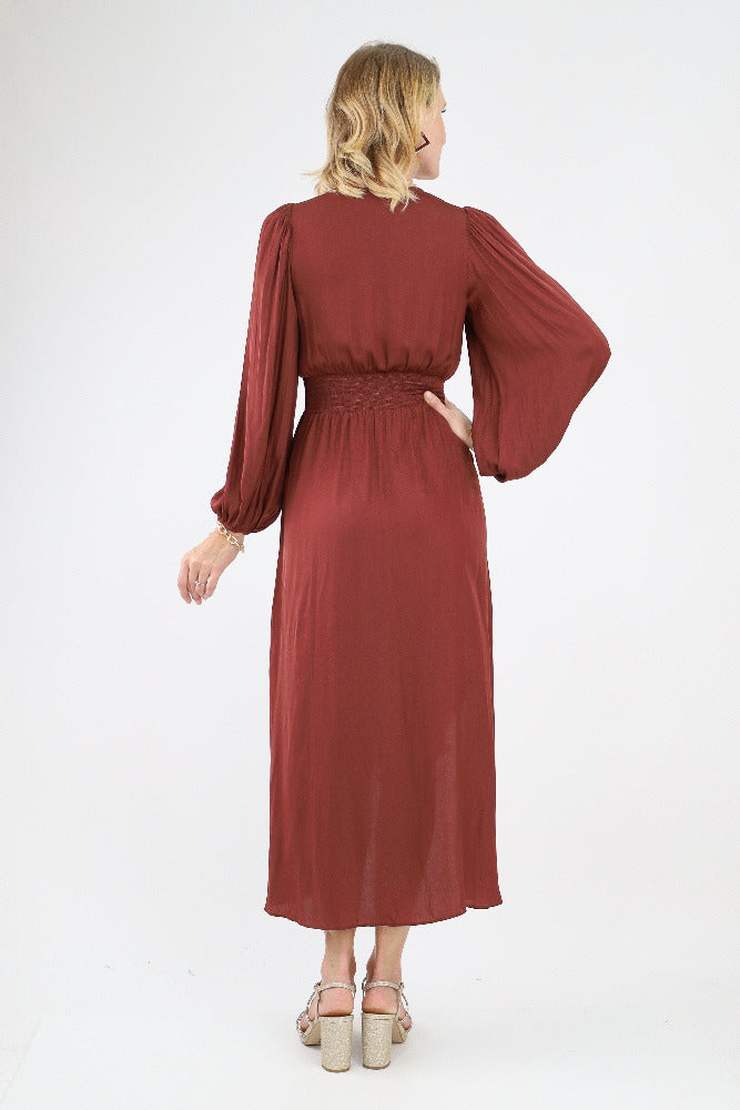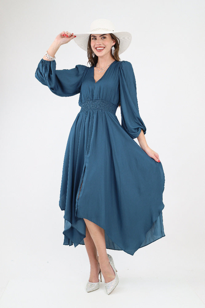 Indulge in elegance with our Solid Long Sleeve Satin Maxi Dress! Flowing and feminine, this dress is a timeless beauty. Elevate your evening with the luxurious allure of satin, making every step a statement of sophistication.