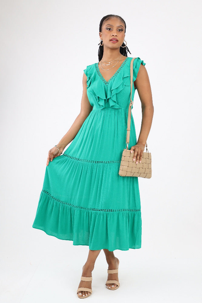 V Neck Midi Dress - Green