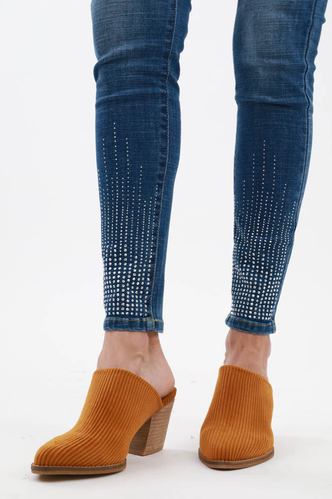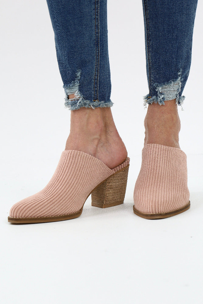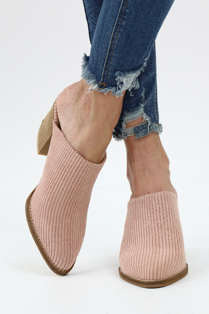 Corduroy Mules Low Heel Slip Ons