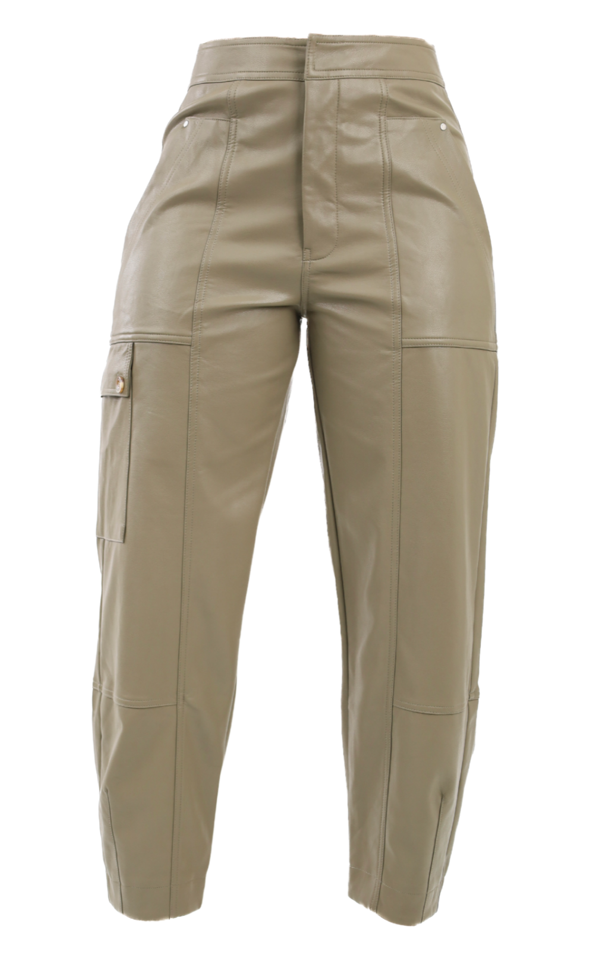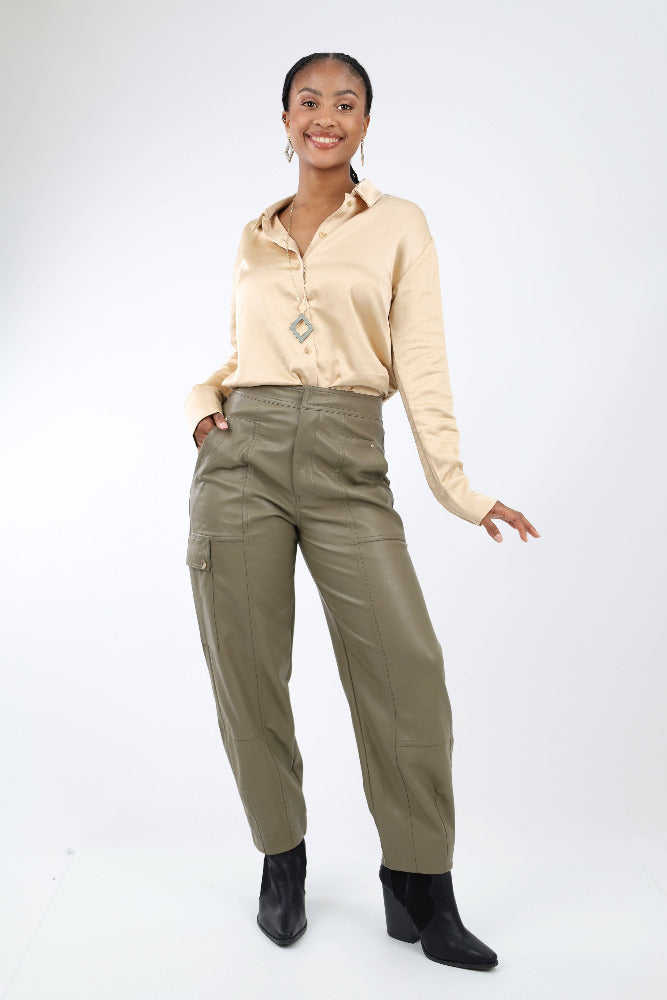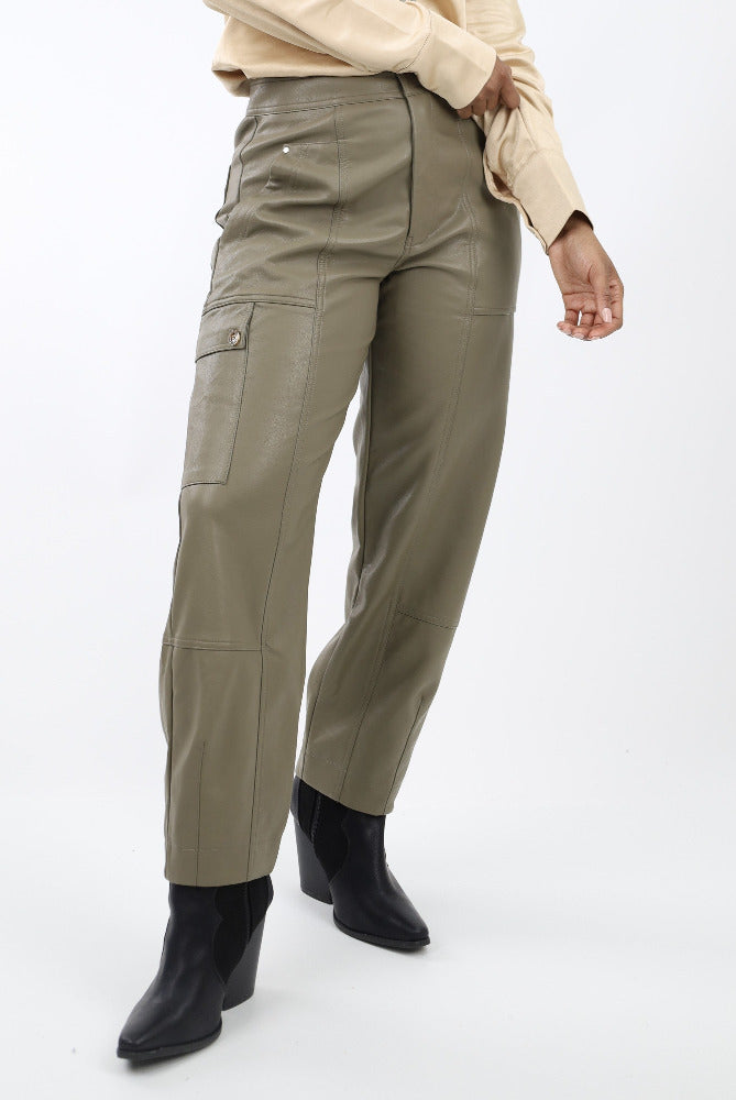 Faux Leather Utility Cargo Pants - Olive