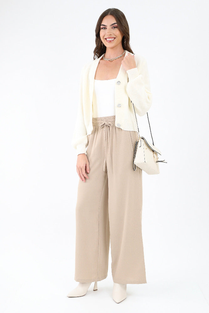 Elevate your style with our High Rise Wide Utility Pants – a versatile addition suitable for work or casual outings. With an elastic waistband and a chic contemporary design, these pants effortlessly transition from day to night, offering endless styling options for any occasion.