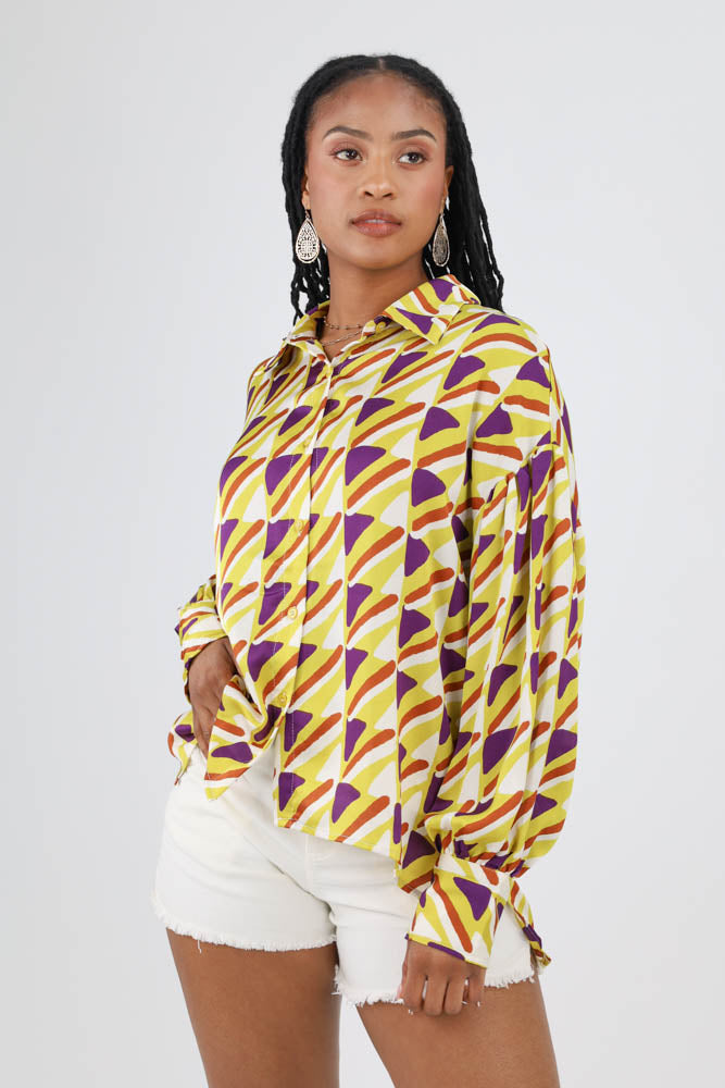 Elevate your wardrobe with our Abstract Print Satin Button Down Shirt! Unleash your artistic style with the bold and vibrant abstract print, while the luxurious satin fabric adds a touch of elegance. This shirt effortlessly combines flair and sophistication, making it the perfect statement piece for any occasion.