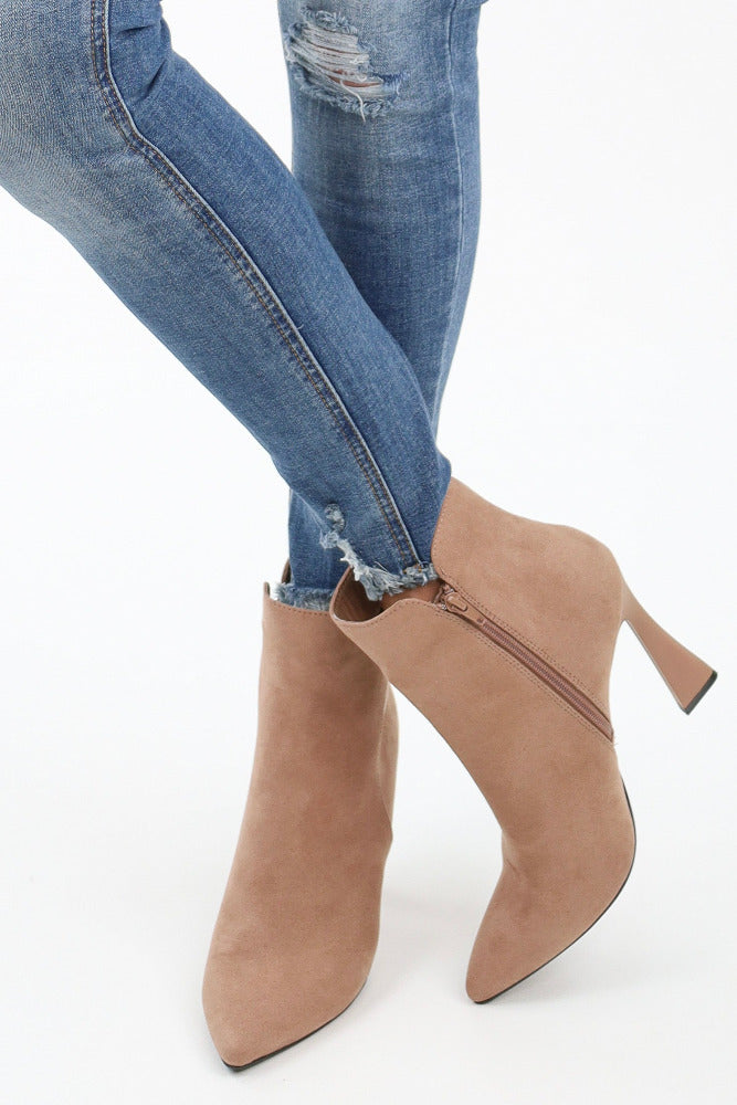 Elevate your style and confidence with these Pointy Toes Ankle Booties featuring a high heel that gracefully widens at the bottom, perfectly designed to make a statement at those dressed-up occasions and effortlessly chic when paired with your favorite flare jeans.