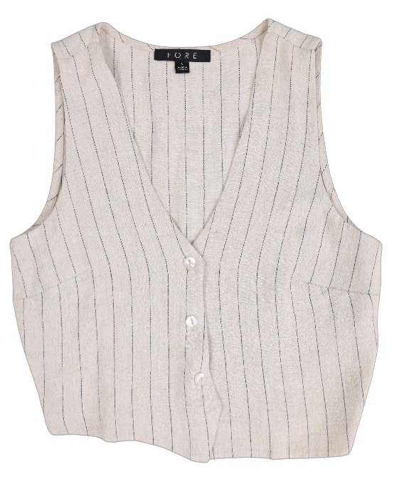 Elevate your style with our Chic Pinstripe Linen Vest. Perfect for adding sophistication to any outfit, this versatile piece exudes timeless charm. Shop now for effortless elegance and standout style!