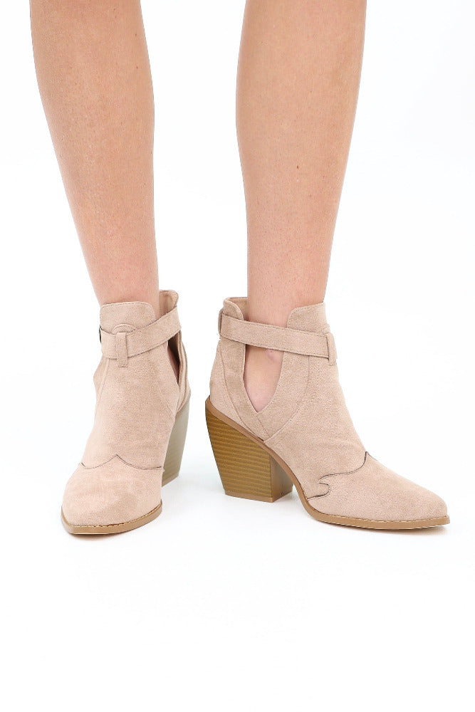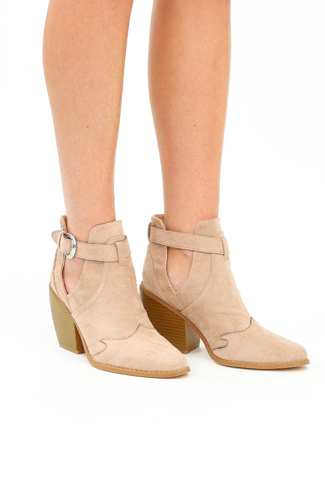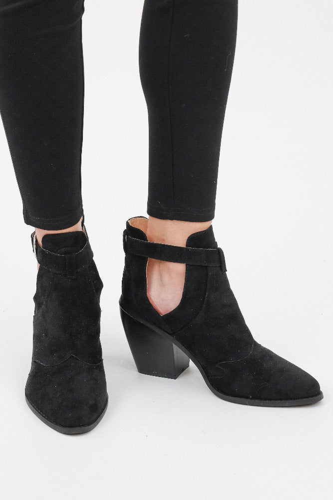 These Suede Buckle Booties are sure to turn heads wherever you go. The perfect choice for days out on the town or dance nights. These Suede Buckle Booties add unmatched style that'll have everyone in the room taking notice. Indulge in luxurious comfort with our suede buckle booties. Soft suede, stylish buckle detail, versatile design for everyday elegance. Walk confidently.