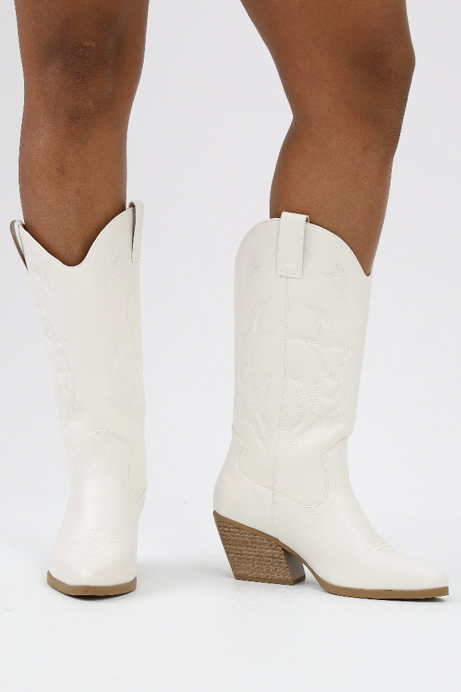 Kick up your style with our White Cowgirl Boots! These western-inspired beauties add a touch of classic charm to any outfit. Whether you're line dancing or strolling through the city, these boots are the perfect blend of trendy and timeless, making every step a stylish statement.