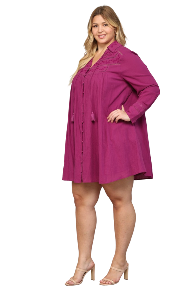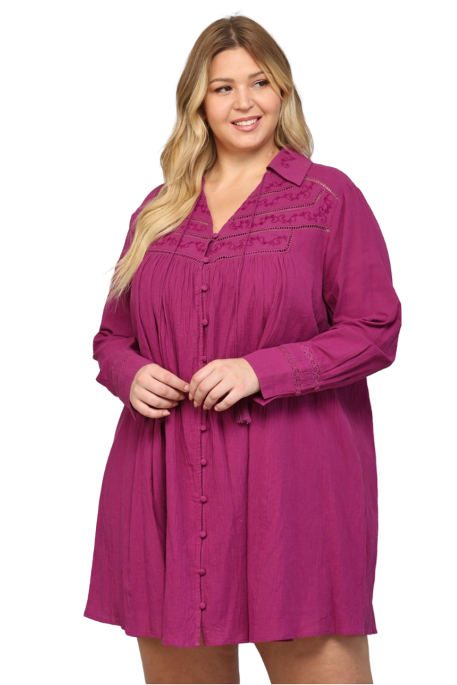 Indulge in casual elegance with our Embellished Cotton Tunic Dress. The breathable cotton fabric, combined with the stylish split neck and button details, creates a relaxed yet polished look, making this dress a go-to choice for laid-back sophistication.
