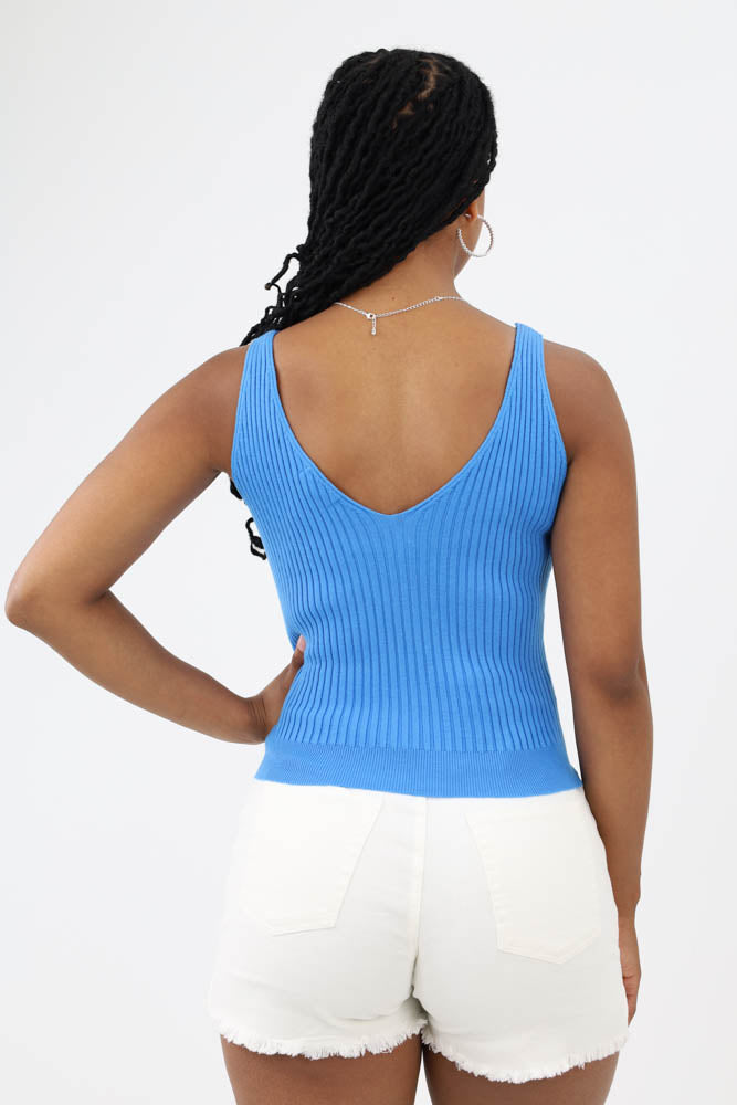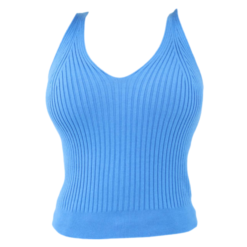 This must-have layering top features a front and back V-neck, lightweight soft ribbed fabric with stretch for easy fitting, solid color, and tank top sleeves, making it an ideal choice for casual and versatile wear.