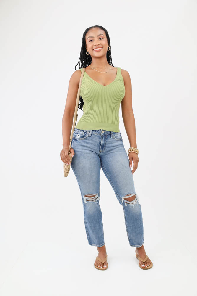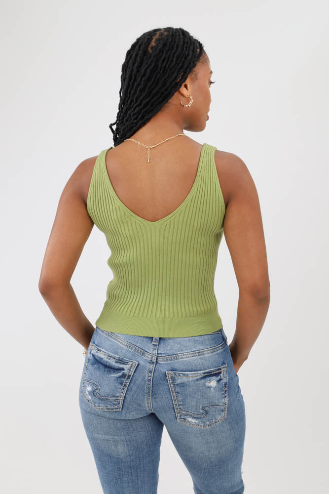 This must-have layering top features a front and back V-neck, lightweight soft ribbed fabric with stretch for easy fitting, solid color, and tank top sleeves, making it an ideal choice for casual and versatile wear.
