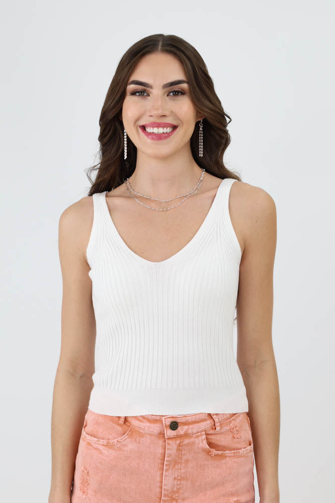Essential Jayde V Neck Tank - Ivory