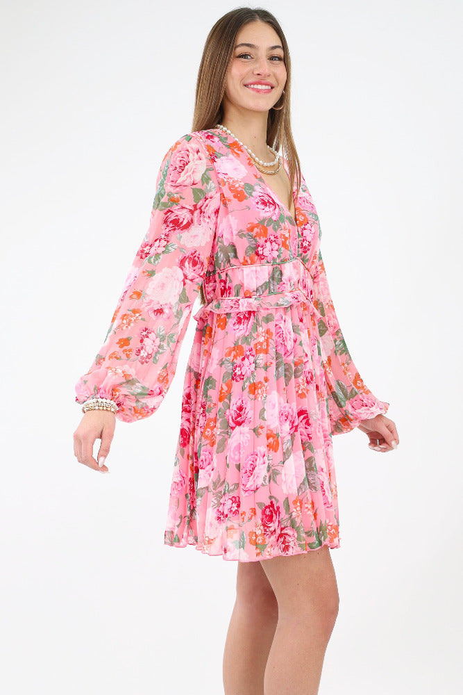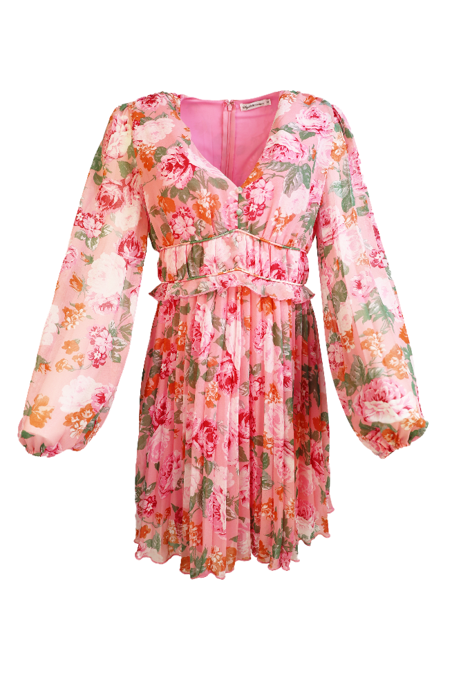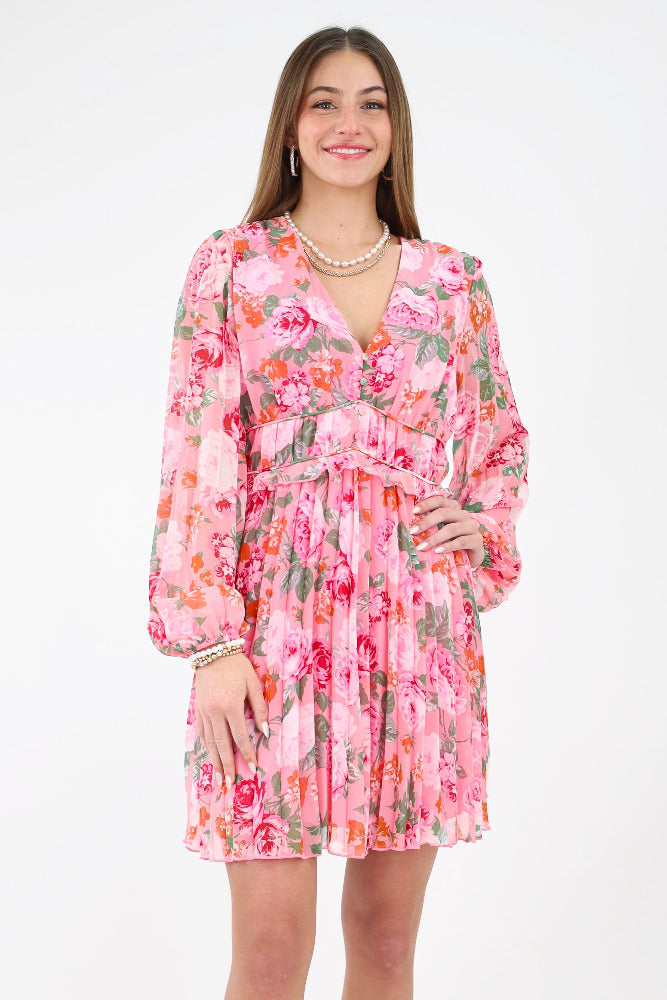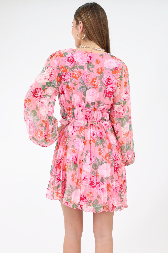 Step into timeless elegance with our Floral Printed Pleated V-Neck Dress, a perfect fusion of sophistication and femininity. The captivating floral pattern and flattering pleats effortlessly enhance your style for a graceful and memorable look.