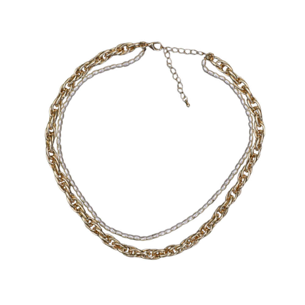 Gold Linked Chain with Freshwater Pearl Layered Necklace - Gold