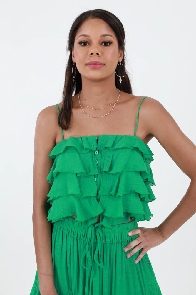 Experience island romance with our Ruffle Top. Effortlessly chic and versatile, this top adds a touch of tropical charm to any ensemble. Shop now and embrace the allure of island life!