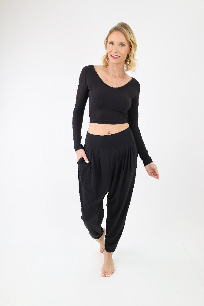You've got to get your hands on our Butter-Soft Long Sleeve Yoga Top! Once you experience the luxurious softness of this material, you won't want to take it off. It's the perfect addition to your workout attire, and it also transitions seamlessly into a casual top when paired with jean shorts.