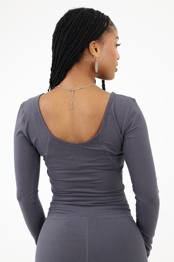 You've got to get your hands on our Butter-Soft Long Sleeve Yoga Top! Once you experience the luxurious softness of this material, you won't want to take it off. It's the perfect addition to your workout attire, and it also transitions seamlessly into a casual top when paired with jean shorts.