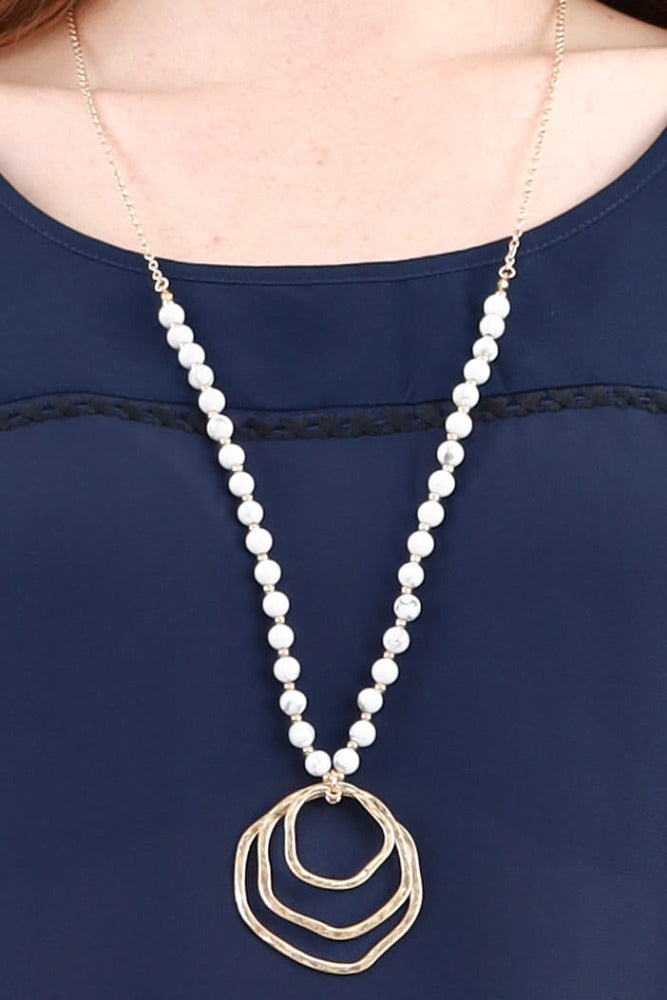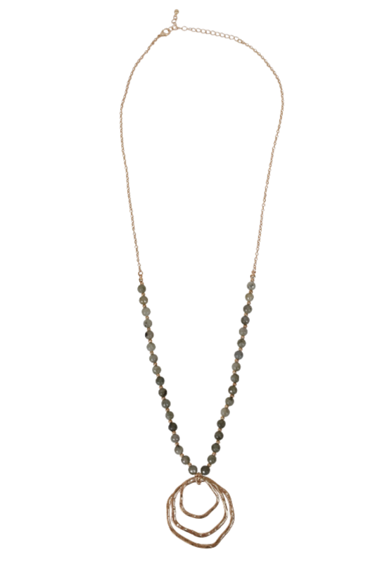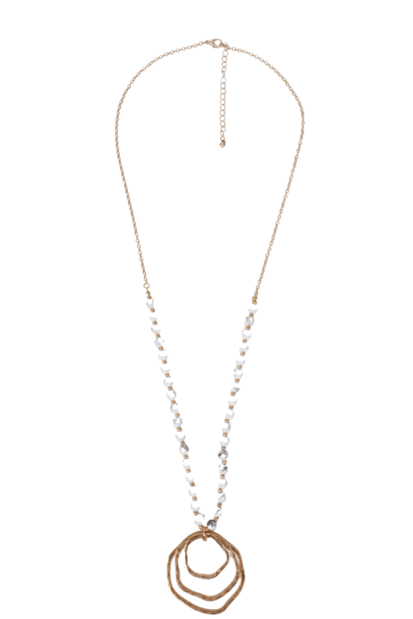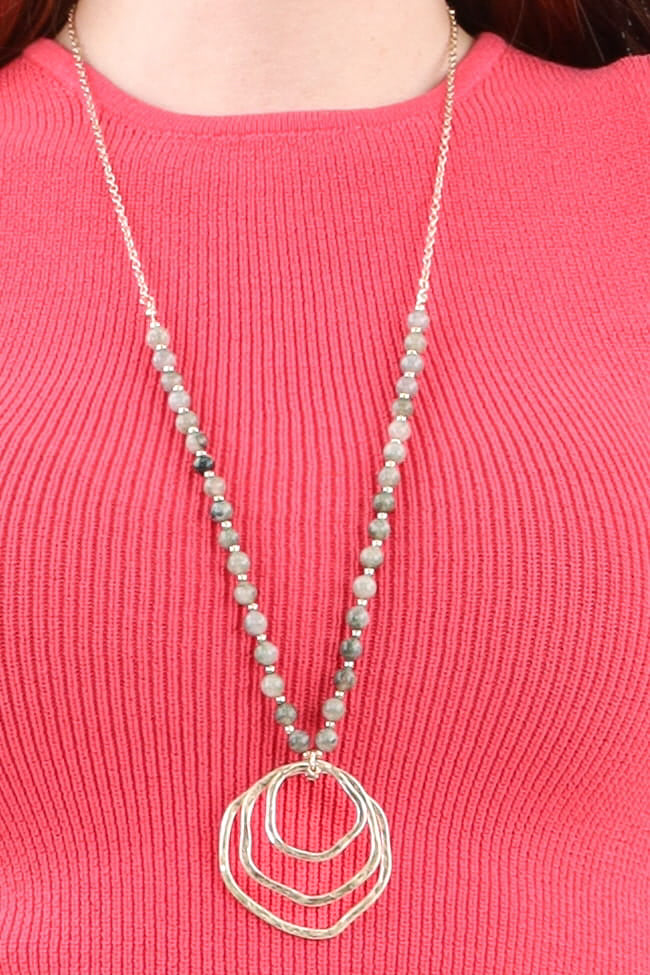 Introducing our Multi Circle Pendant Necklace - a stylish and versatile long necklace featuring beaded chain details and an irregular circle design for a uniquely stunning and fashionable look that's sure to turn heads.