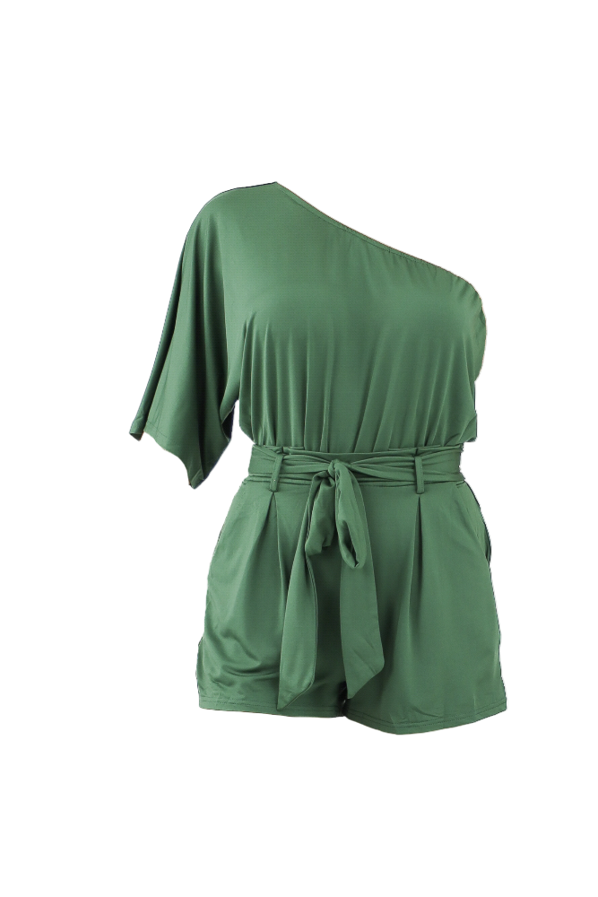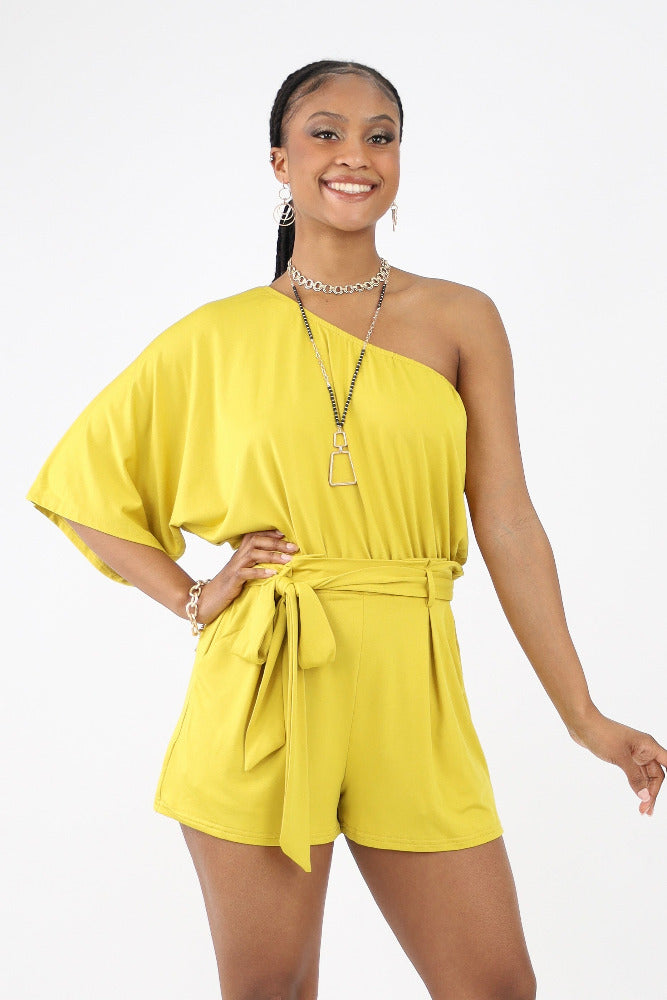Dance the night away in our One Shoulder Venetian Romper! With its playful one-shoulder style and lively Venetian-inspired details, this romper is your ticket to a fun and fabulous evening. Let loose, stand out, and own the spotlight in our One Shoulder Venetian Romper.