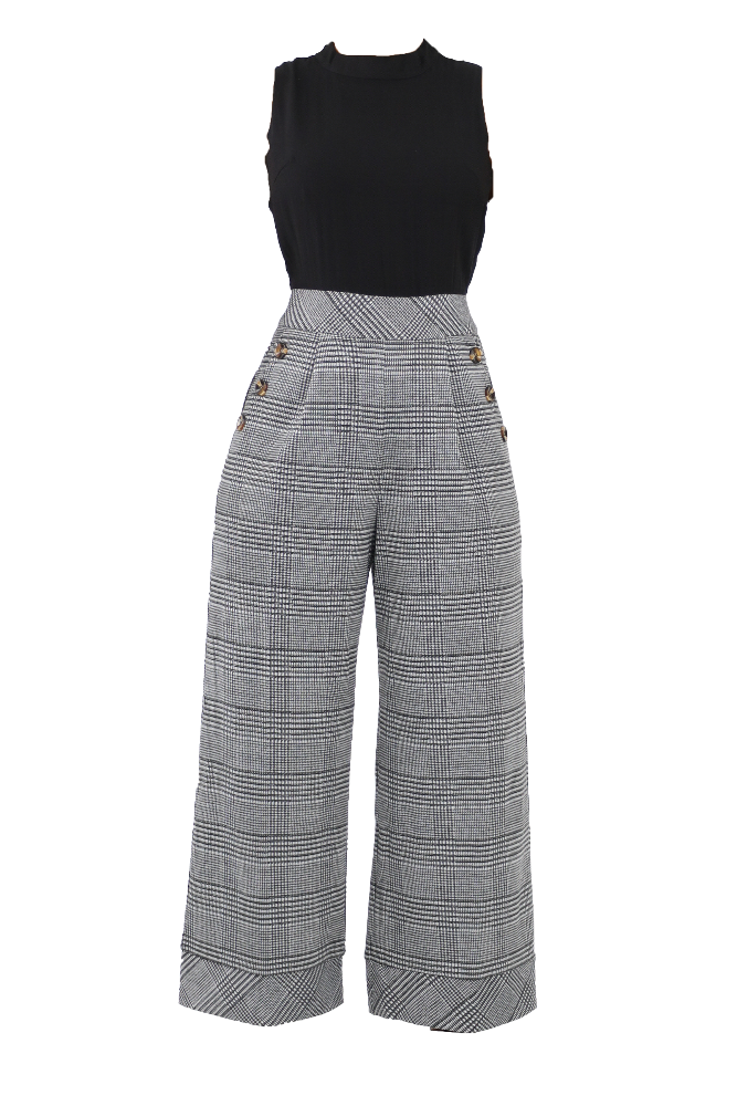 Step into sophistication with this sleeveless jumpsuit, where classic design meets modern elegance. Elevate your style effortlessly, showcasing a timeless pattern in a sleek sleeveless silhouette that effortlessly transitions from day to night.